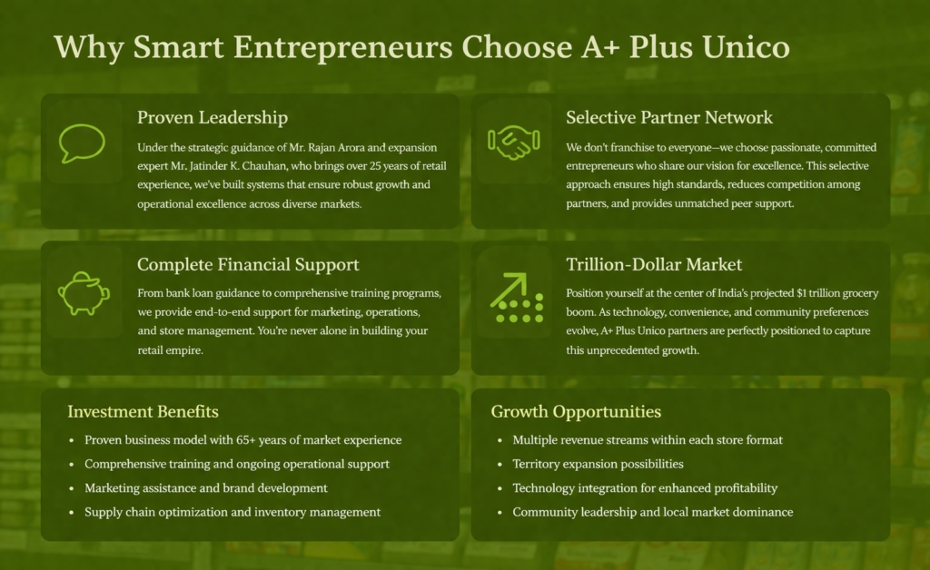Your retail success story starts here. Whether you’re an aspiring entrepreneur with big dreams or looking to expand your existing family business, A+ Plus Unico Super Store offers the proven pathway to sustainable growth and community impact.